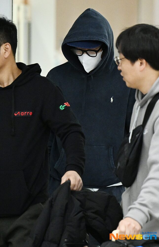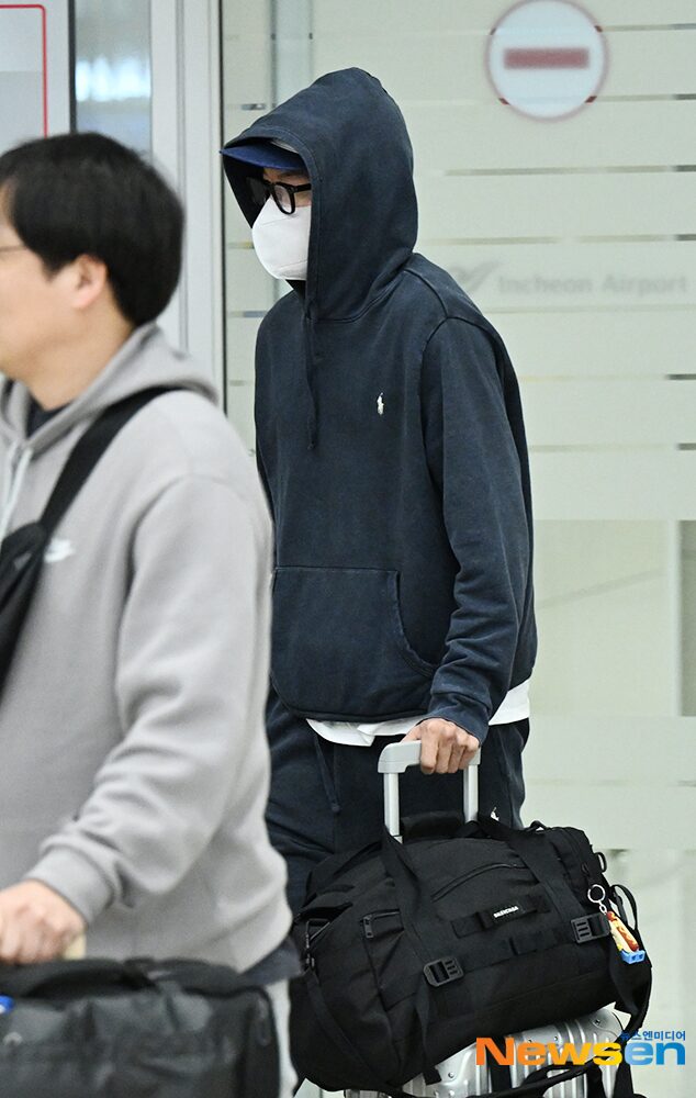 Dressed in a casual getup with a cap, glasses, a mask, and his hoodie over his head, he moved quickly through the airport, doing his best to hide his face and avoid much attention. His return follows the recent public confirmation of his relationship with actress Han So Hee amidst swirling romance rumors.