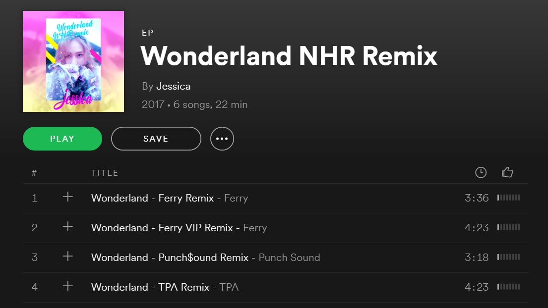 Created by Ferry, Beatrappa, TPA, and Punch Sound, these remixes will be featured on Jessica’s Wonderland NHR Remix EP.