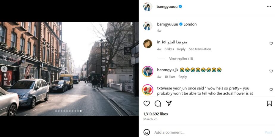 TXT Hueningkai‘s Instagram photos have gone viral for the unexpected location.