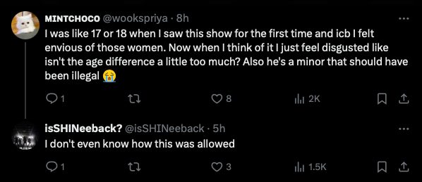 Yet, this debate isn’t entirely new. The fandom has long felt conflicted about the program due to how young SHINee was then. A few years ago, Shawols discussed the show via Reddit, and one commented, “The first girl even said she felt like she was committing a crime when she heard how old Taemin was.”