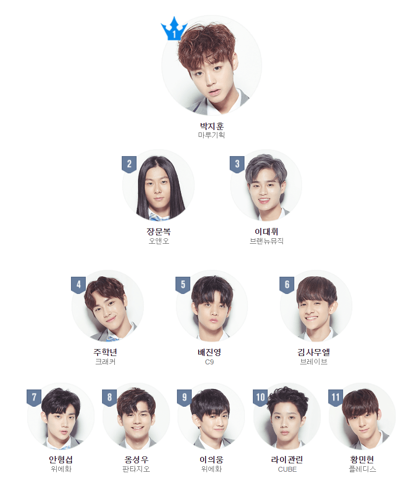 Only the top 11 trainees will be allowed to debut in the group created by Produce 101 Season 2. The current top 11 contestants are as follows: