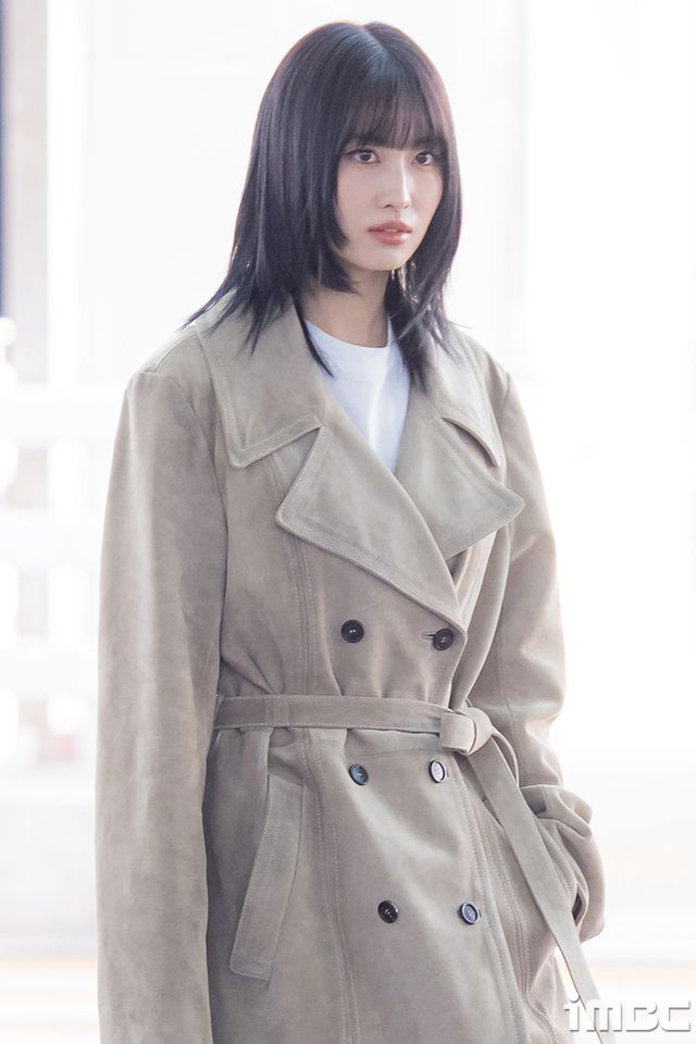 Wearing her signature hime-style haircut, the Japanese idol struck the perfect balance between casual and elegant with her white t-shirt and long trench coat.