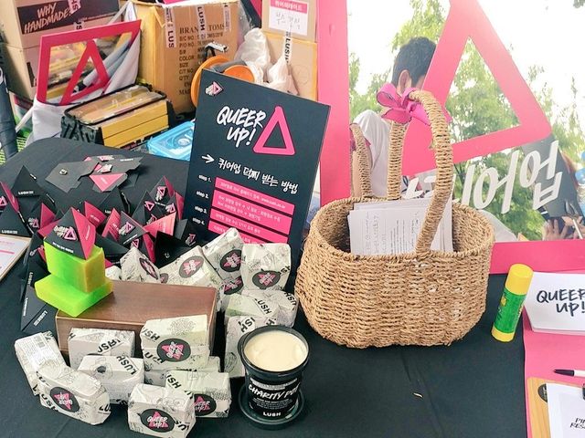 The “Queer Up” campaign was actually started by LUSH, who set up photobooths for marchers to join in on the new lyrics.