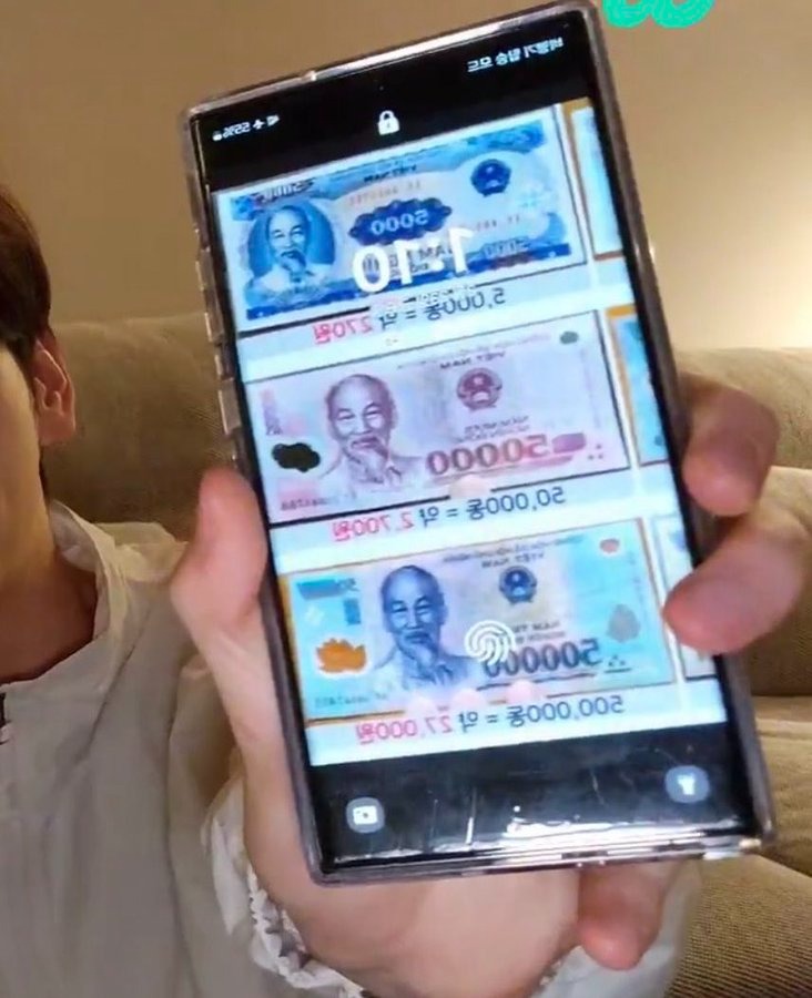 During the broadcast, Soobin showed his phone and lock screen, which showed a picture of the Vietnamese currency, the Vietnamese dong, and the conversion to the Korean won.