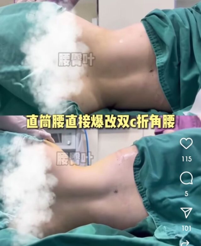 In the surgery, patients’ ribs are pushed inwards to create a “C” line on the waist. Additionally, waist fat is removed and inserted into the buttocks.