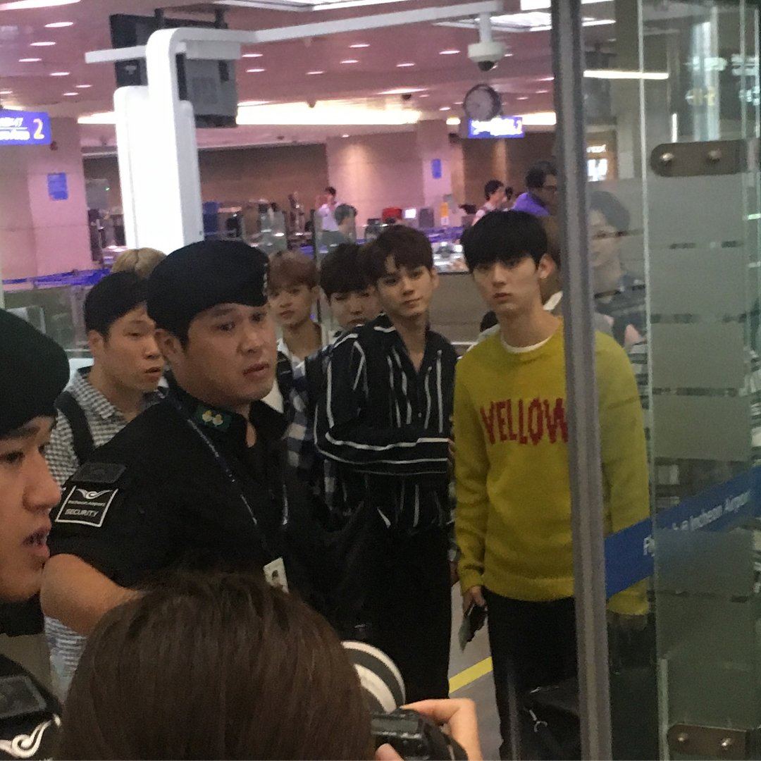This was spotted to be one of Wanna One’s first airport fashion debuts, but overcrowding became too dangerous.