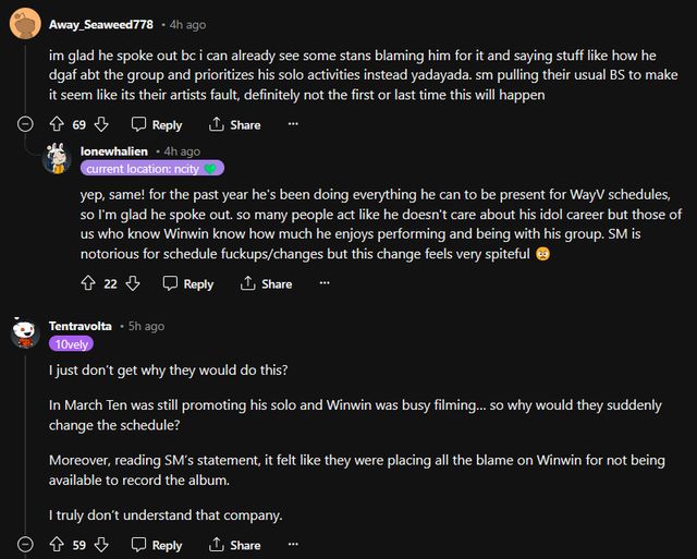 A Reddit post was even created on the topic to clear up the misunderstanding that WinWin himself is trying to ease out of WayV content and only focus on his acting career.