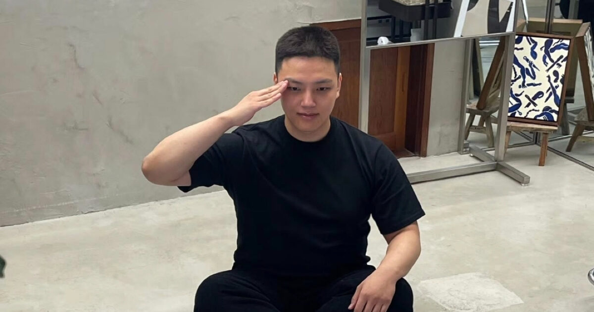 Ahead of his enlistment, on the 14th, he posted a photo of his shaved head on his SNS without any words, greeting his fans in advance. He caught attention by posing in a salute with his cut hair arranged in a name and heart shape, with a cake placed in front of him.
