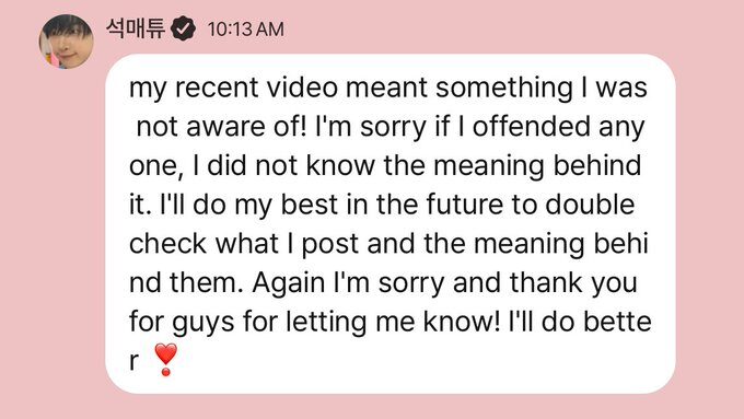 The TikTok video has since been deleted, and while some fans accepted his apology, others continue to express disappointment and urge greater responsibility from idols online.