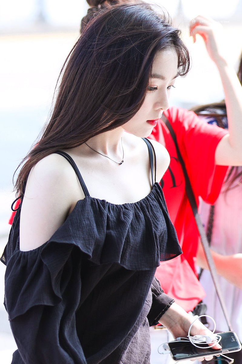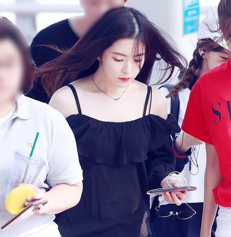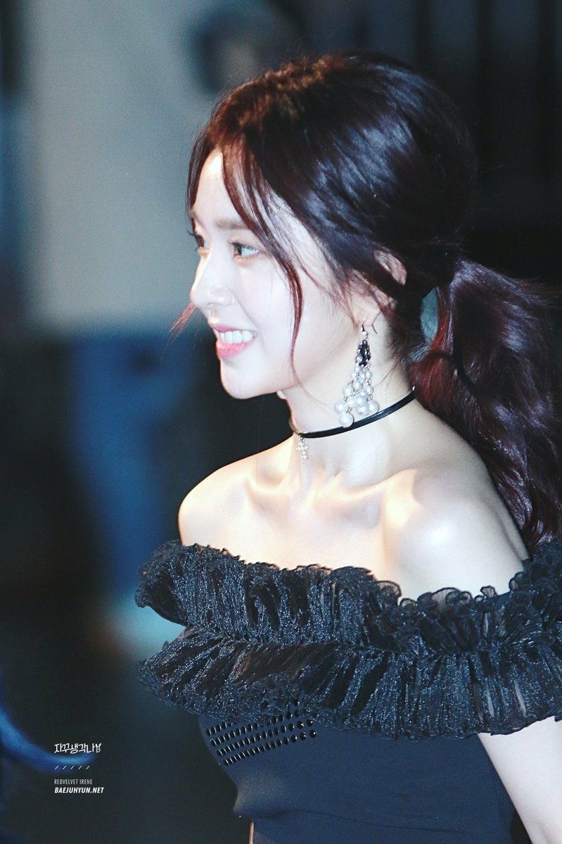 Red Velvet‘s Irene is known as one of the most conservative female K-Pop idols when it comes to showing skin, but there has been a couple of times where she’s shown off her shoulders.  Although she rarely wears revealing outfits, there were a few times where she’s been spotting exposing her bare shoulders through some more risqué outfits.