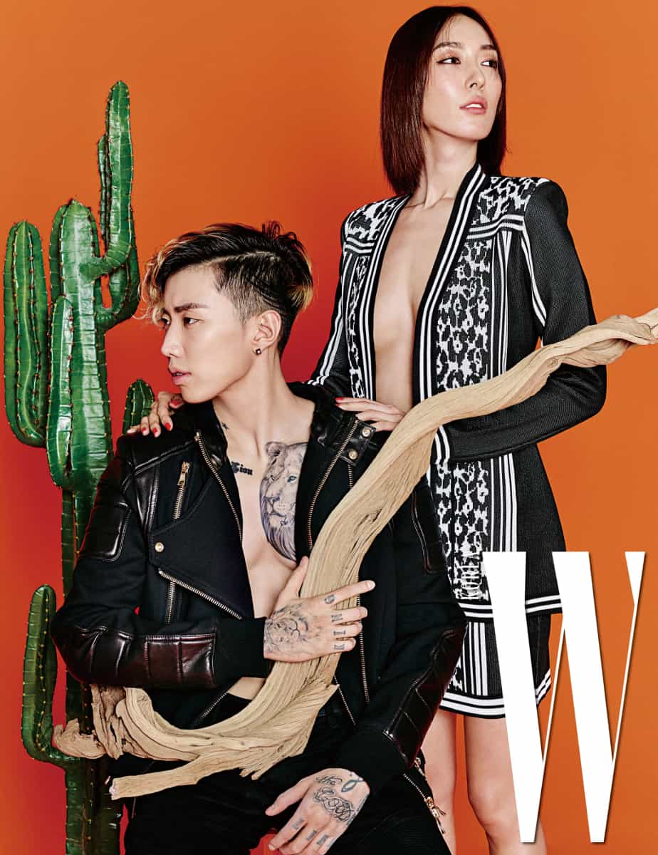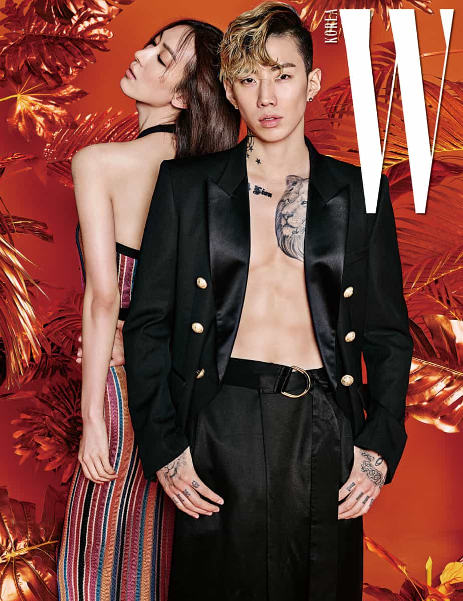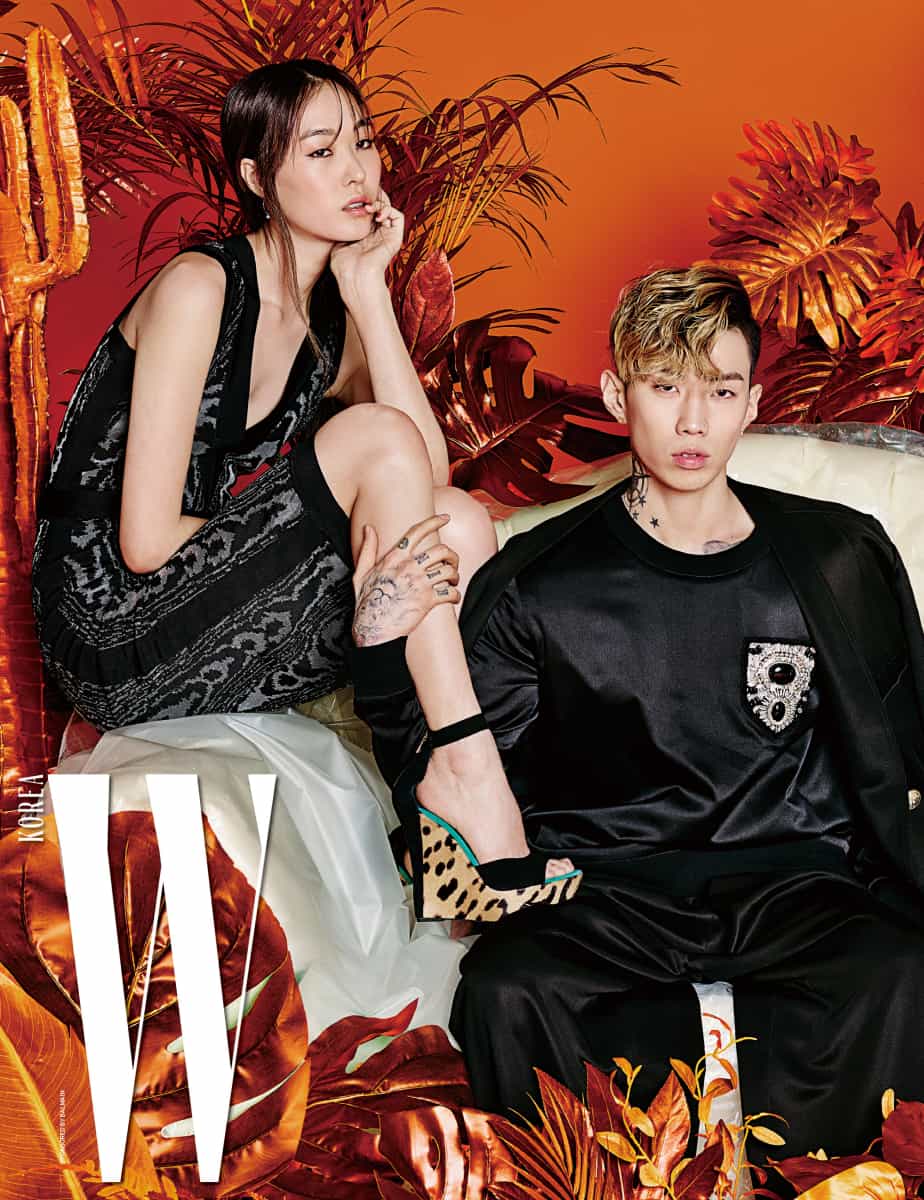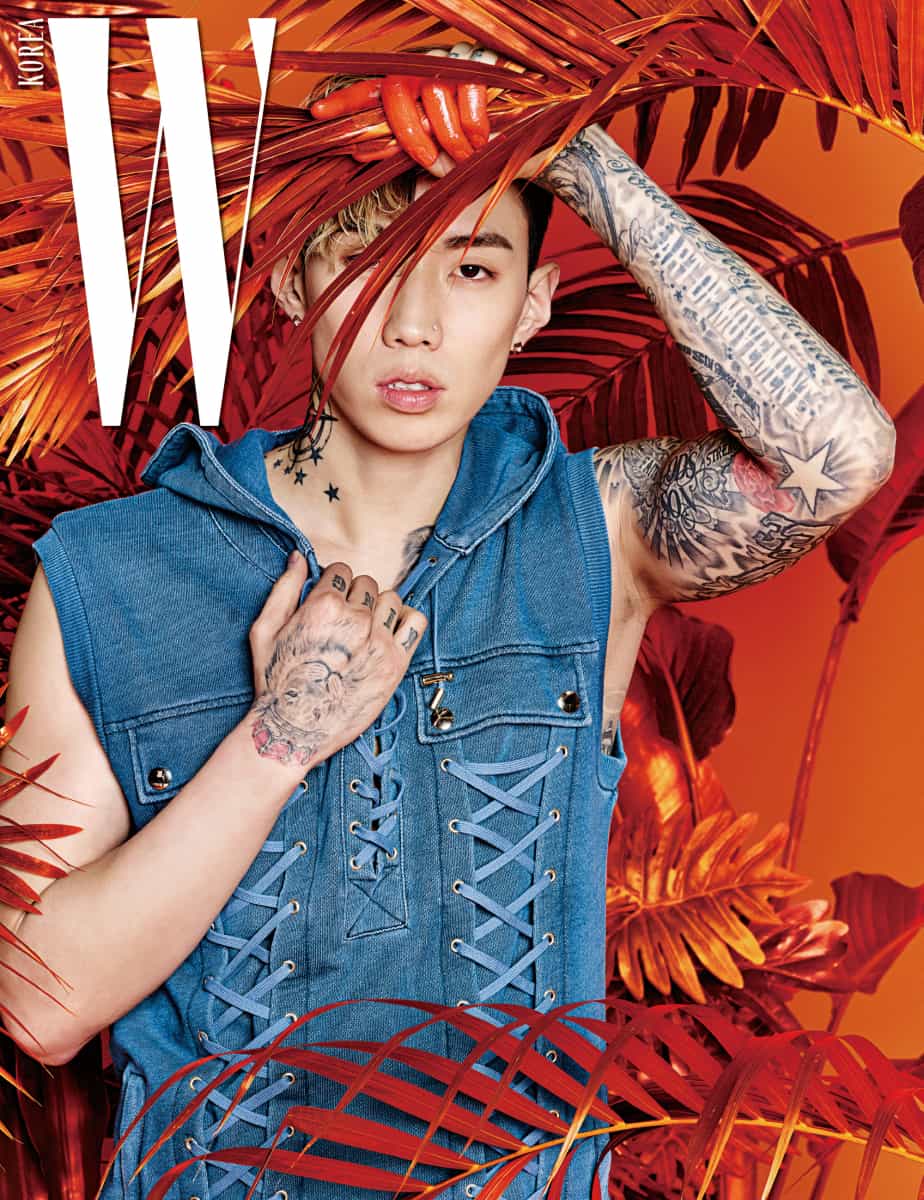 On March 3, W Korea released exclusive photos of Jay Park showing off his sexy body for their latest issue. Both the model and Jay Park were captured in stunning outfits and eye-catching sets that captured the exotic aesthetic of the wild. Surrounded by vibrant orange foliage, the theme of the photo shoot appeared to be centered around a “glam jungle” concept.