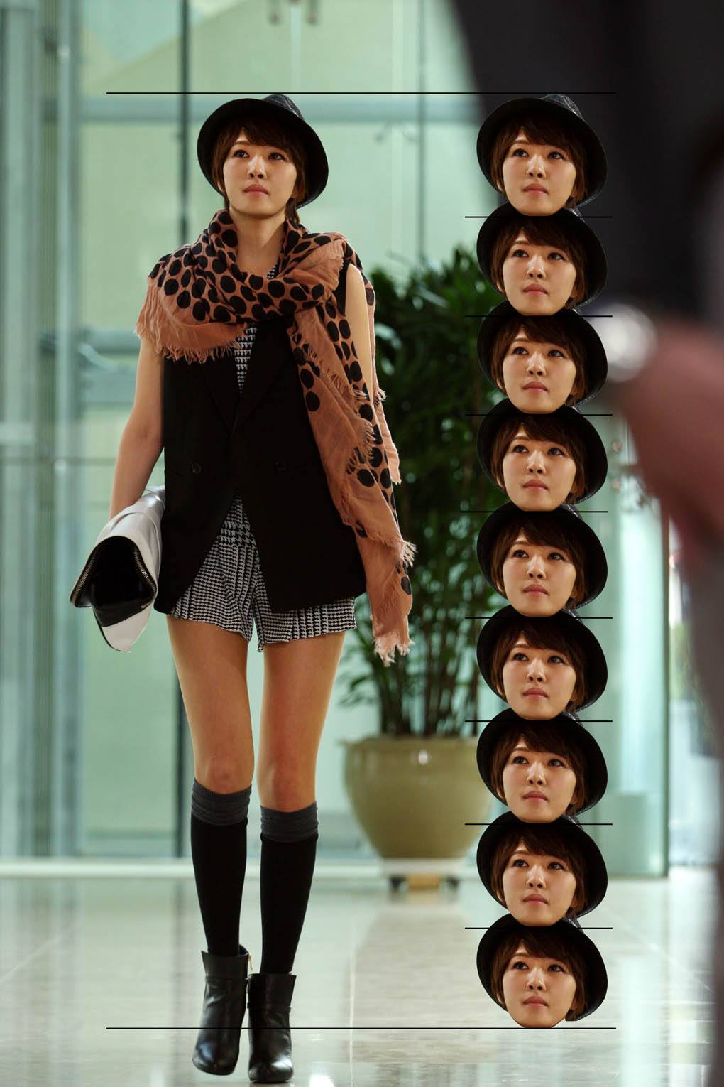 Korea’s latest beauty challenge trend involves standing straight up next to eight of your own heads stacked on top of each other.