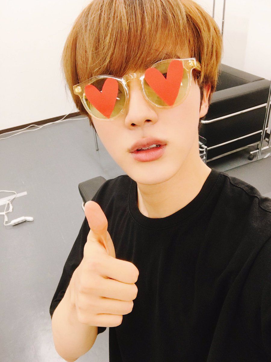 Those heart glasses are actually Jin’s latest expression of love for A.R.M.Y!