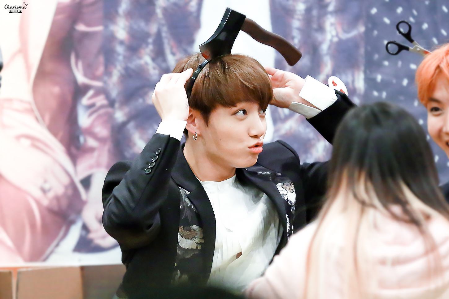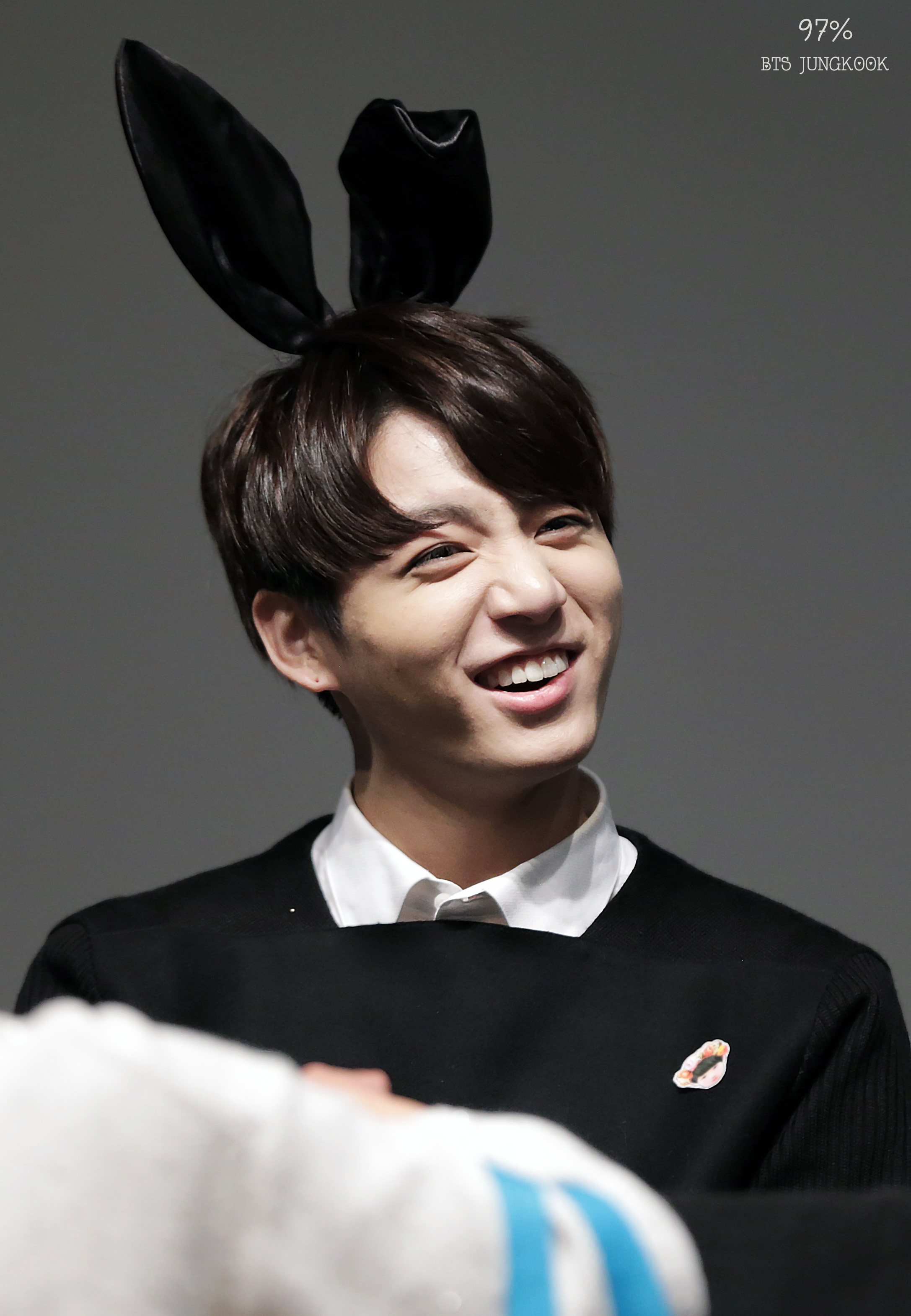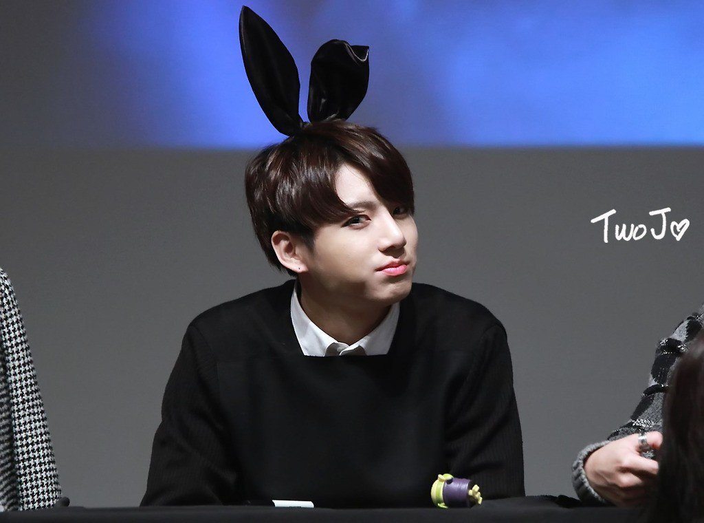 Jungkook gives a quick smirk while sporting some bunny ears.