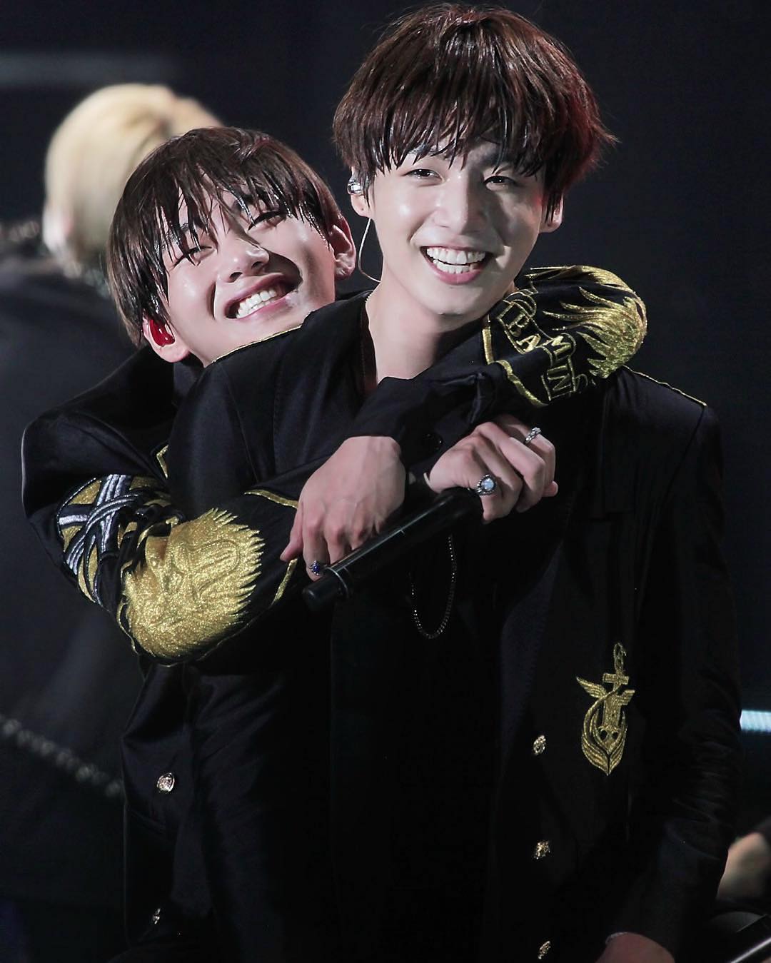 Jungkook subtly bites Rap Monster‘s shoulder during a fan meeting and lightly brushes his shoulder off after his display of affection. Looks like the Kookie Monster is hungry!