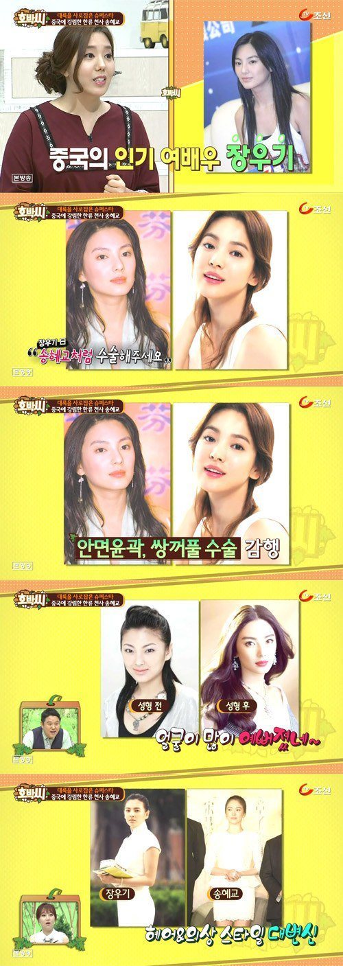 On a recent broadcast, panelists discussed Chinese actress Zhang Yuqi, who reportedly gained fame after receiving plastic surgery to look like Song Hye Kyo.