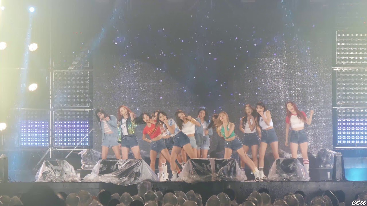Cosmic Girls performed a dangerous stunt on stage despite the slippery conditions made by the rain.