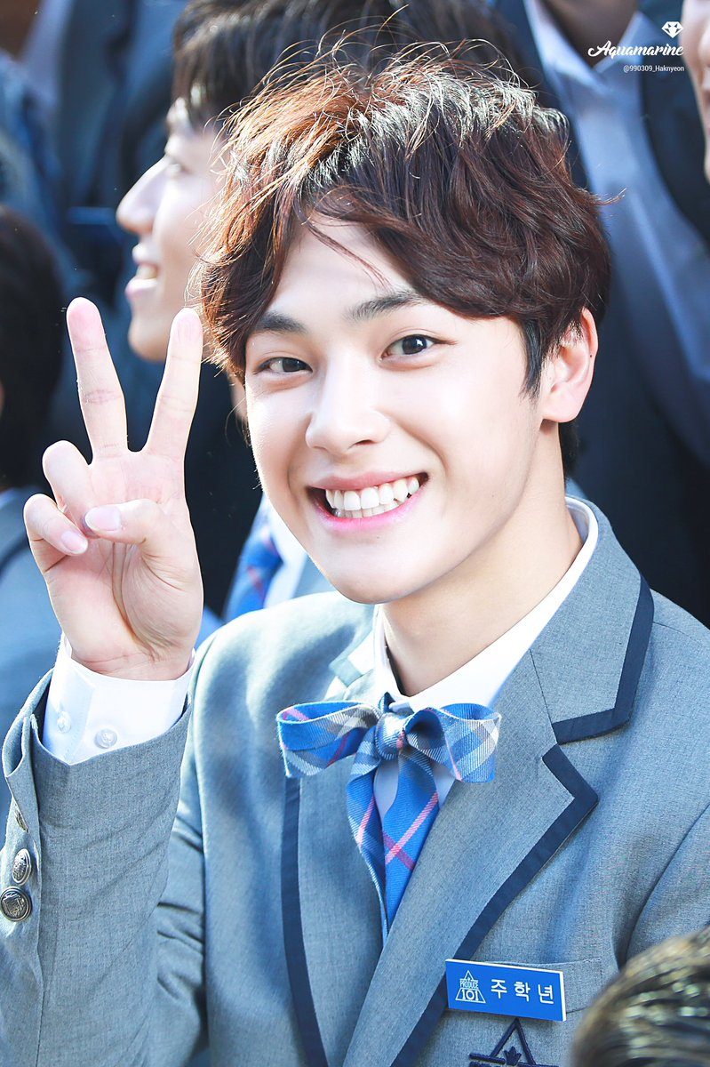 Joo Haknyeon is a 19-year-old trainee who has been with Cre.ker Entertainment for 2 years and 1 month. His specialty is being able to speak in the Jeju dialect and his unique hobby is feeding pigs.