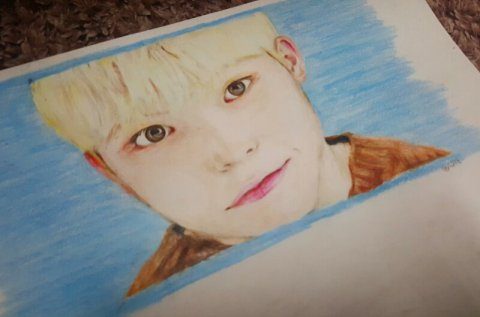 A year later, in her first year of middle school, she drew and uploaded this amazing colored picture of Seventeen‘s Woozi.