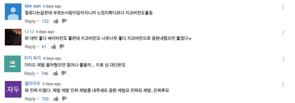 “Whoa it’s so good! PSY’s version was good too but ZICO’s version is so so good. I wish ZICO releases his versionㅠㅠ”