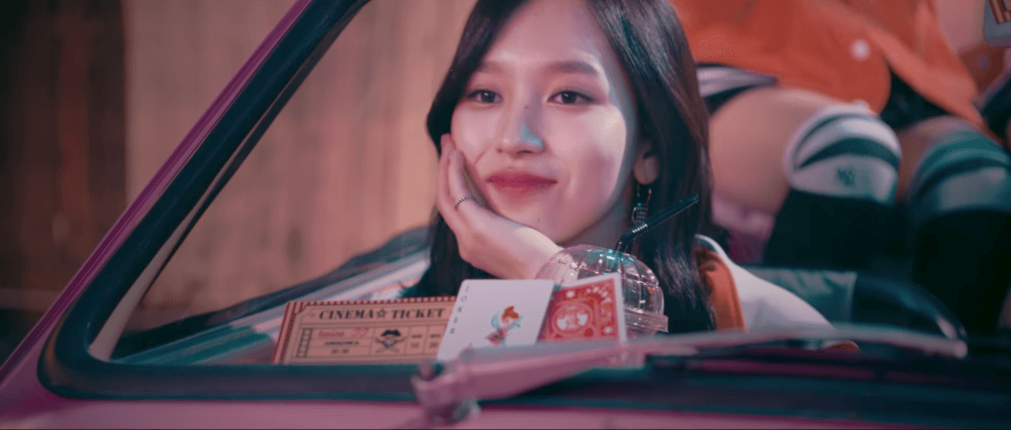 SanaAt the start of the MV, a superhero’s mask can be seen on the car’s license plate, just like the one Sana used to hide her true identity.