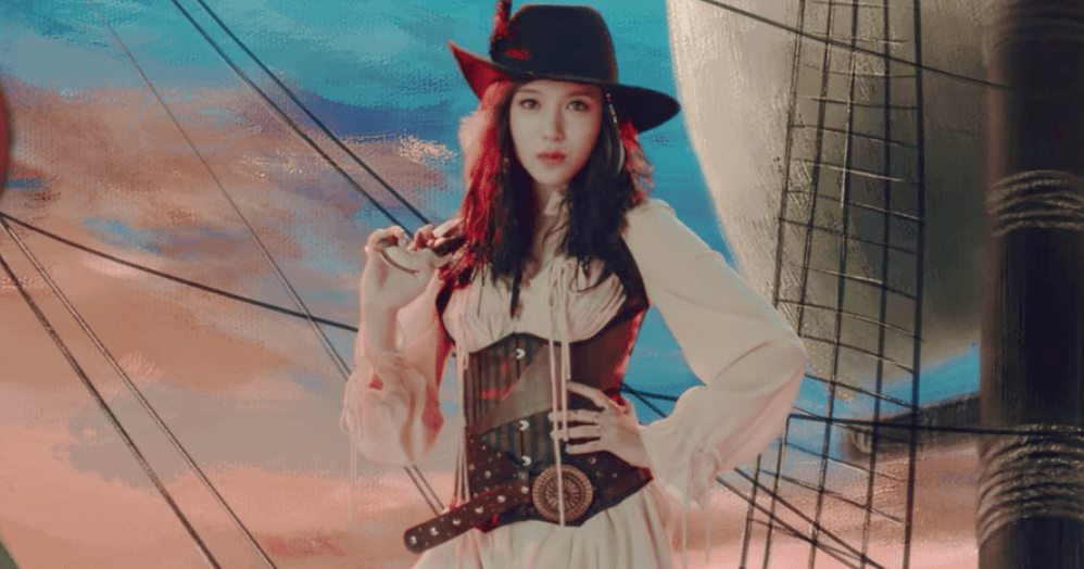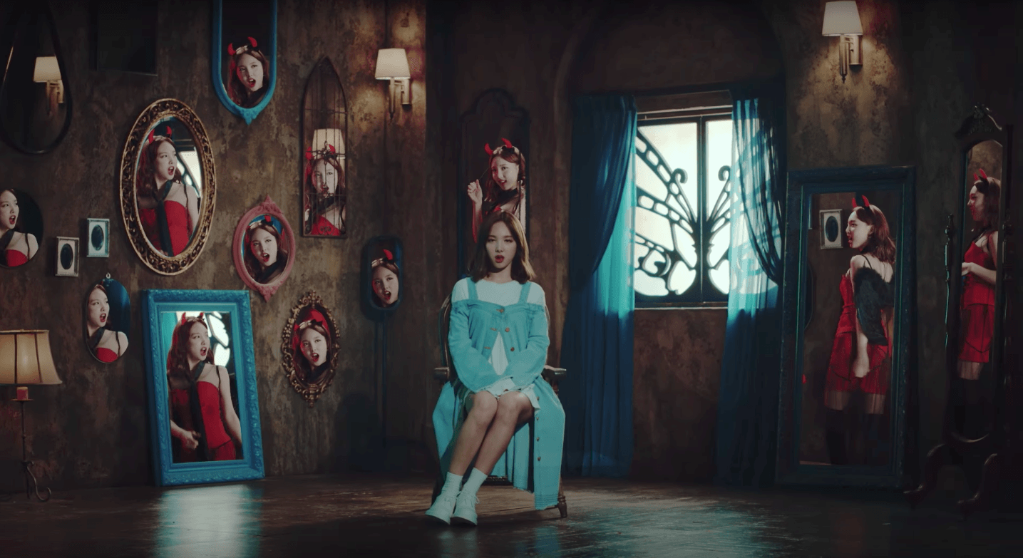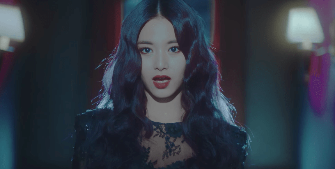 Tzuyu appeared in the original video as a vampire, and in the Japanese version, she’s seen sipping on a blood red drink.