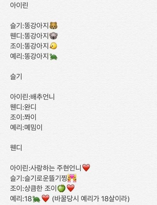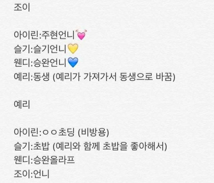 Naming people on one’s phone is a very important matter that demonstrates how close you are with that person. If Red Velvet’s names for one another is any indication of their relationship, it appears the girls have quite a strong bond.