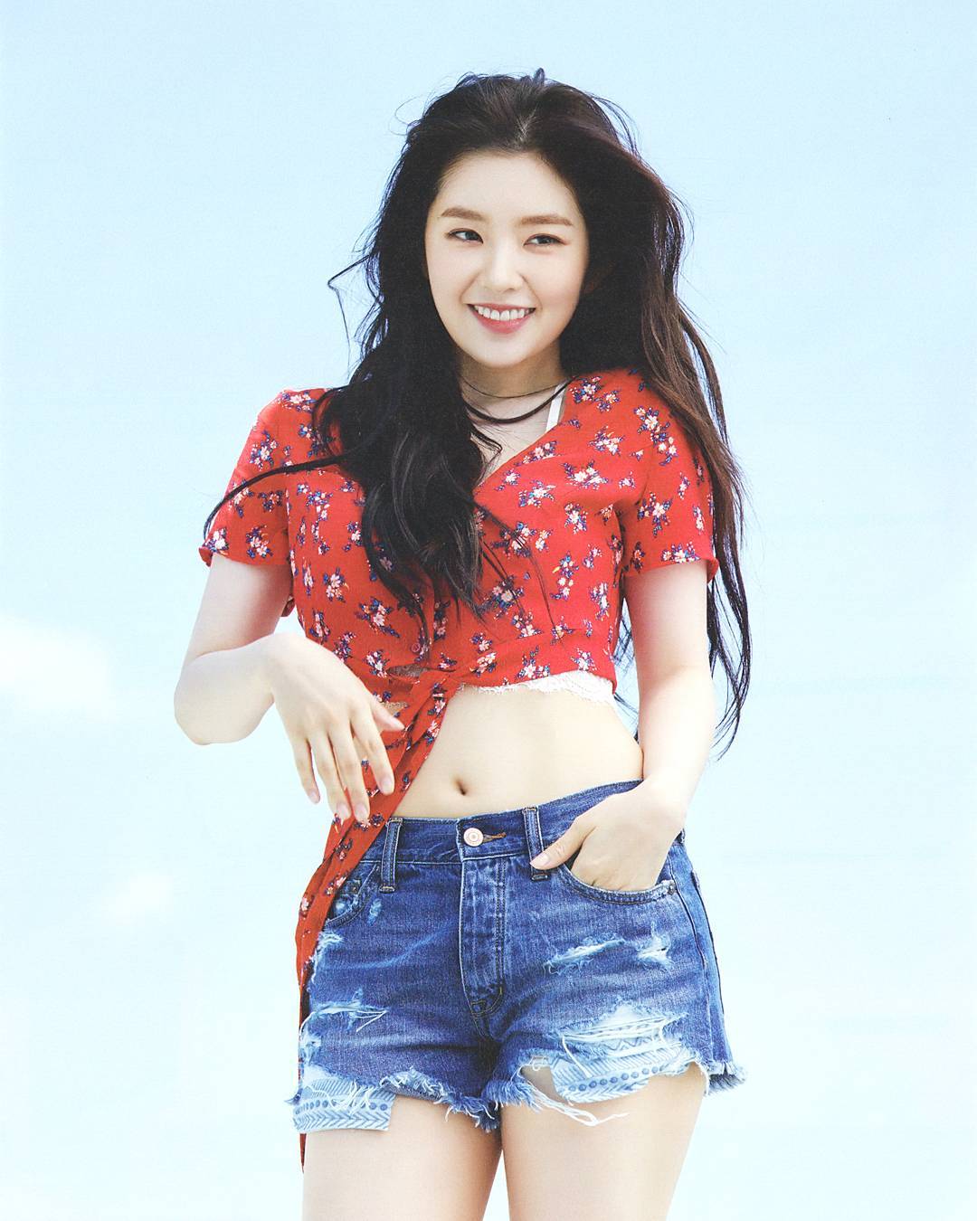While other Red Velvet members don’t appear to mind showing off their abs, Irene immediately realizes when her tummy is exposed.