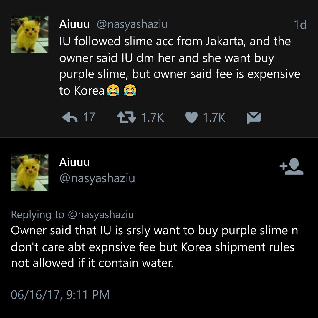 It was later revealed by the person who runs the account that IU sent them a direct message, looking to purchase one of their purple slimes.