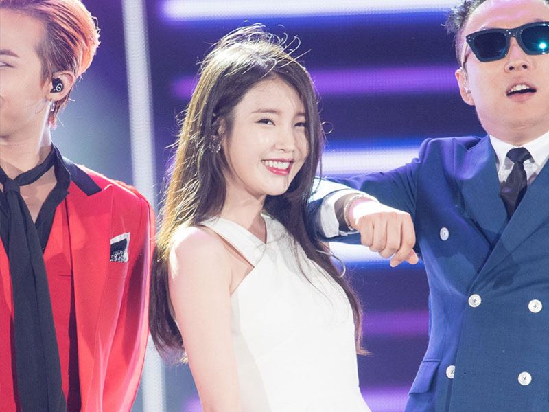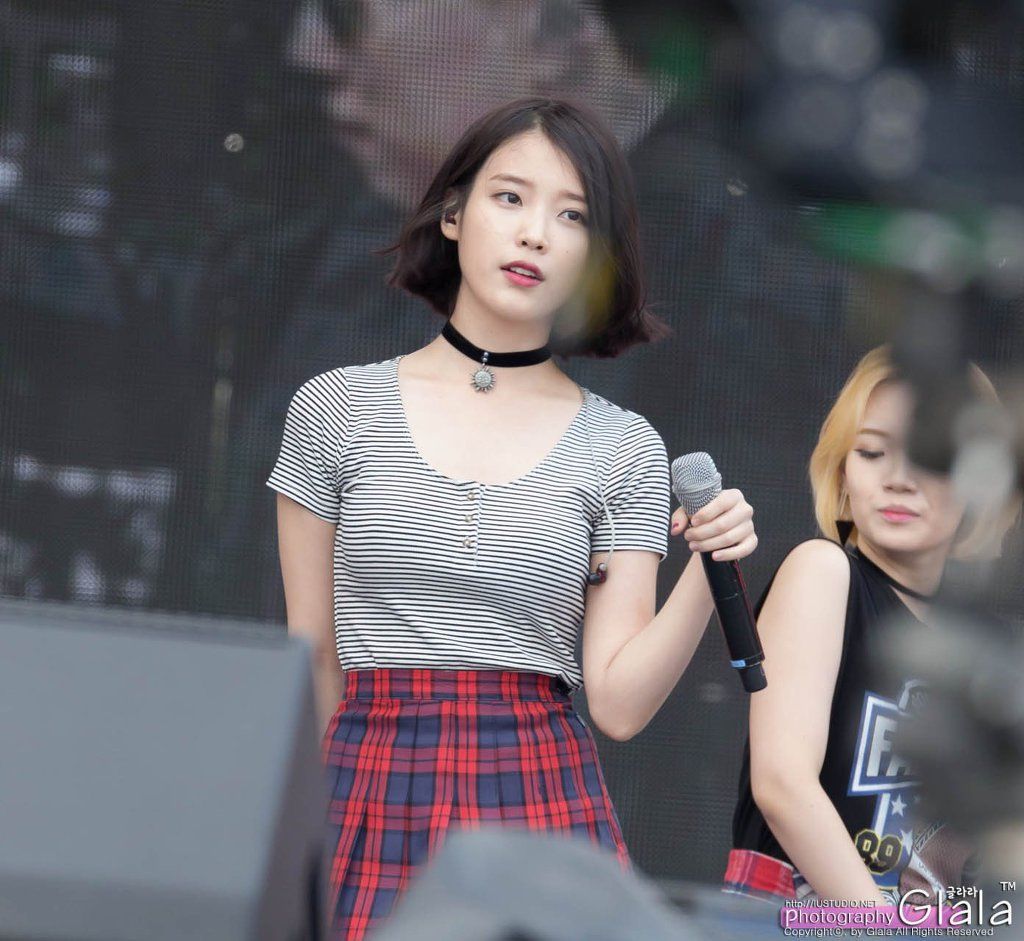 Fast forward to 2015, IU appeared on stage with a similar length, but dark and straight.