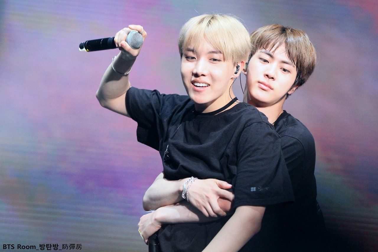 The BigHit Entertainment artists were in the middle of speaking to fans during the Bangkok stop of their Wings Tour when suddenly, Jin engulfed J-Hope with a back hug.