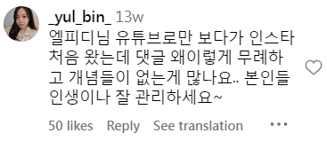 • “This is my first time on LPD’s Instagram because I’ve only been watching her YouTube videos. Why are there so many rude and thoughtless comments here? Please take care of your own lives~”