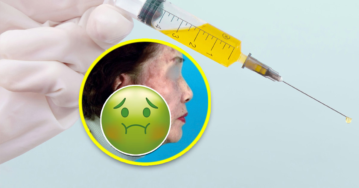 The skin began to peel off, revealing granuloma (a mass of granulation tissue triggered by an infection or inflammation) on the woman’s cheeks, where she had been injected.