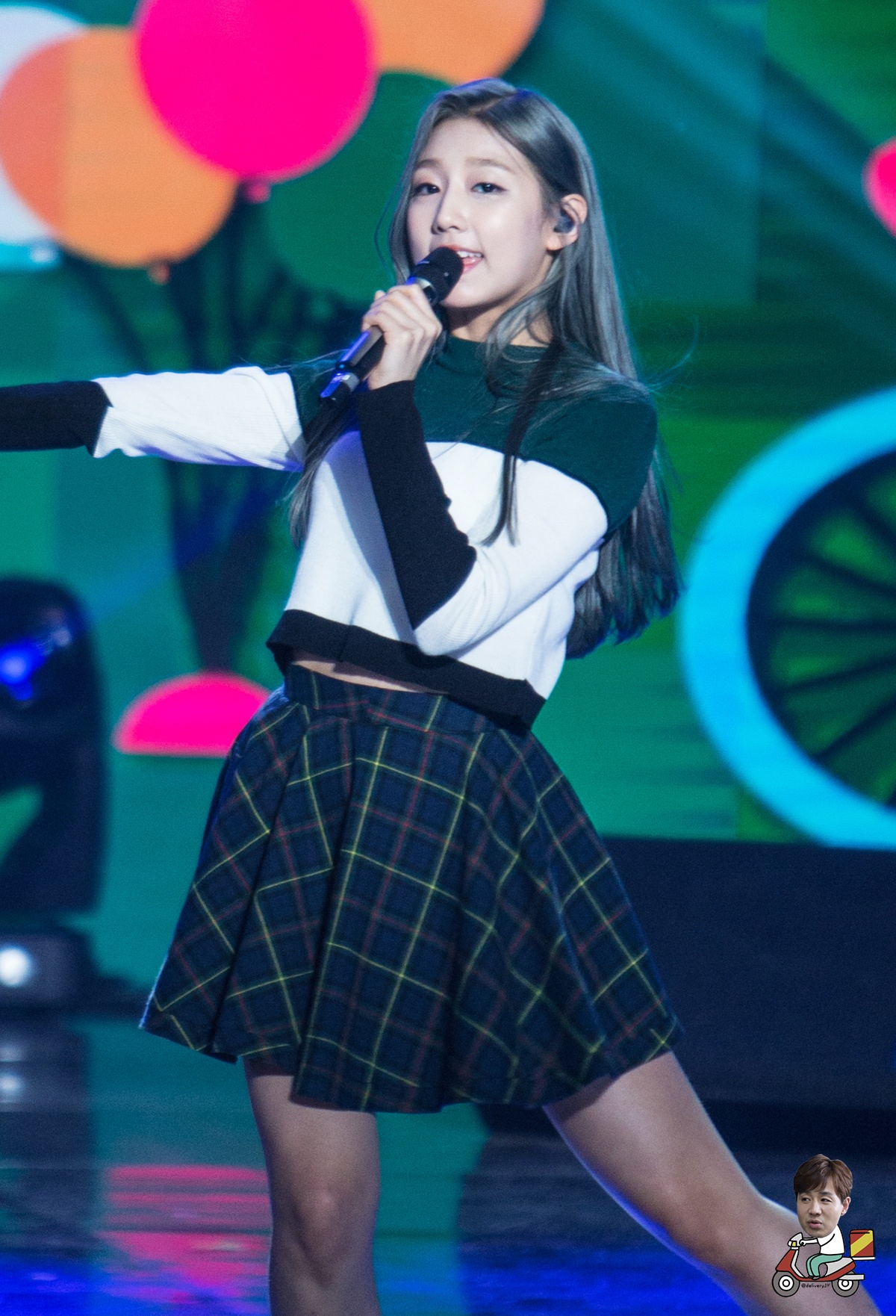 Seola’s dark hair and bangs make the 94-liner appear years younger.