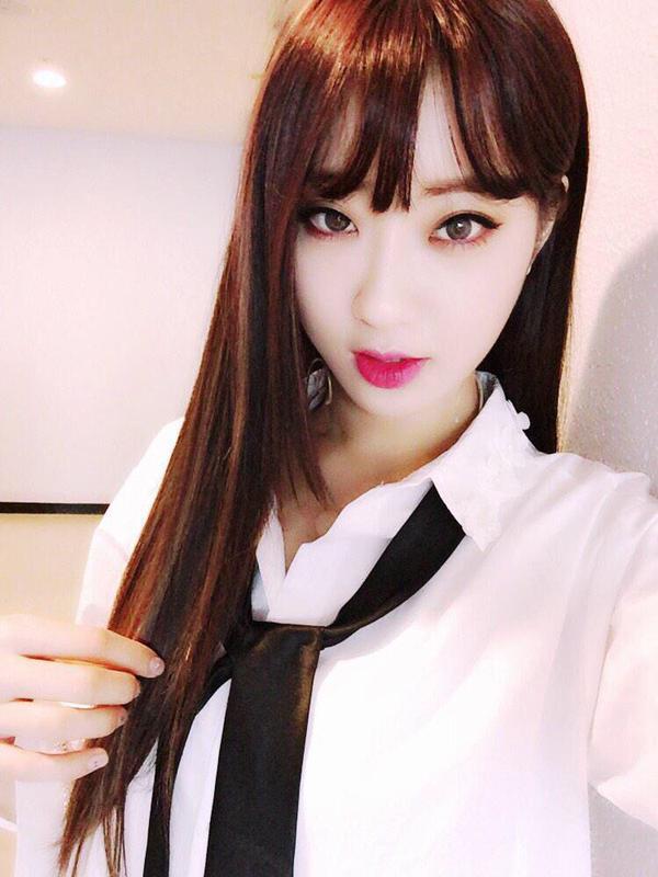 The heavy eye makeup as well as the red lips have become something of a trademark for Kyungri