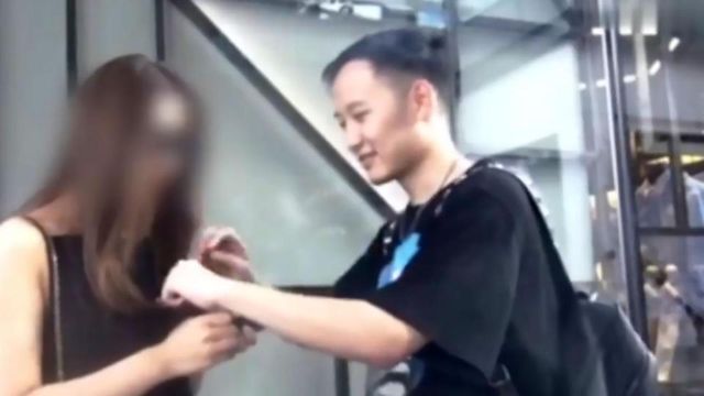 In his videos, he uses a coin to show women in the streets of Chengdu that he can make it appear in their bras.