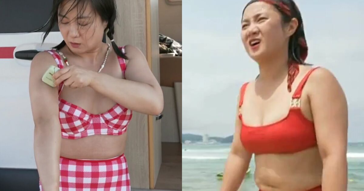 In an episode of variety show I Live Alone, Park Na Rae was shown going to the beach to enjoy a refreshing swim in the sweltering heat. After setting up her spot on the beach, she took off her long dress to reveal a beautiful red bikini. It came as a shocker to many viewers, given she does not have the “ideal” body type expected of women in the Korean entertainment industry.