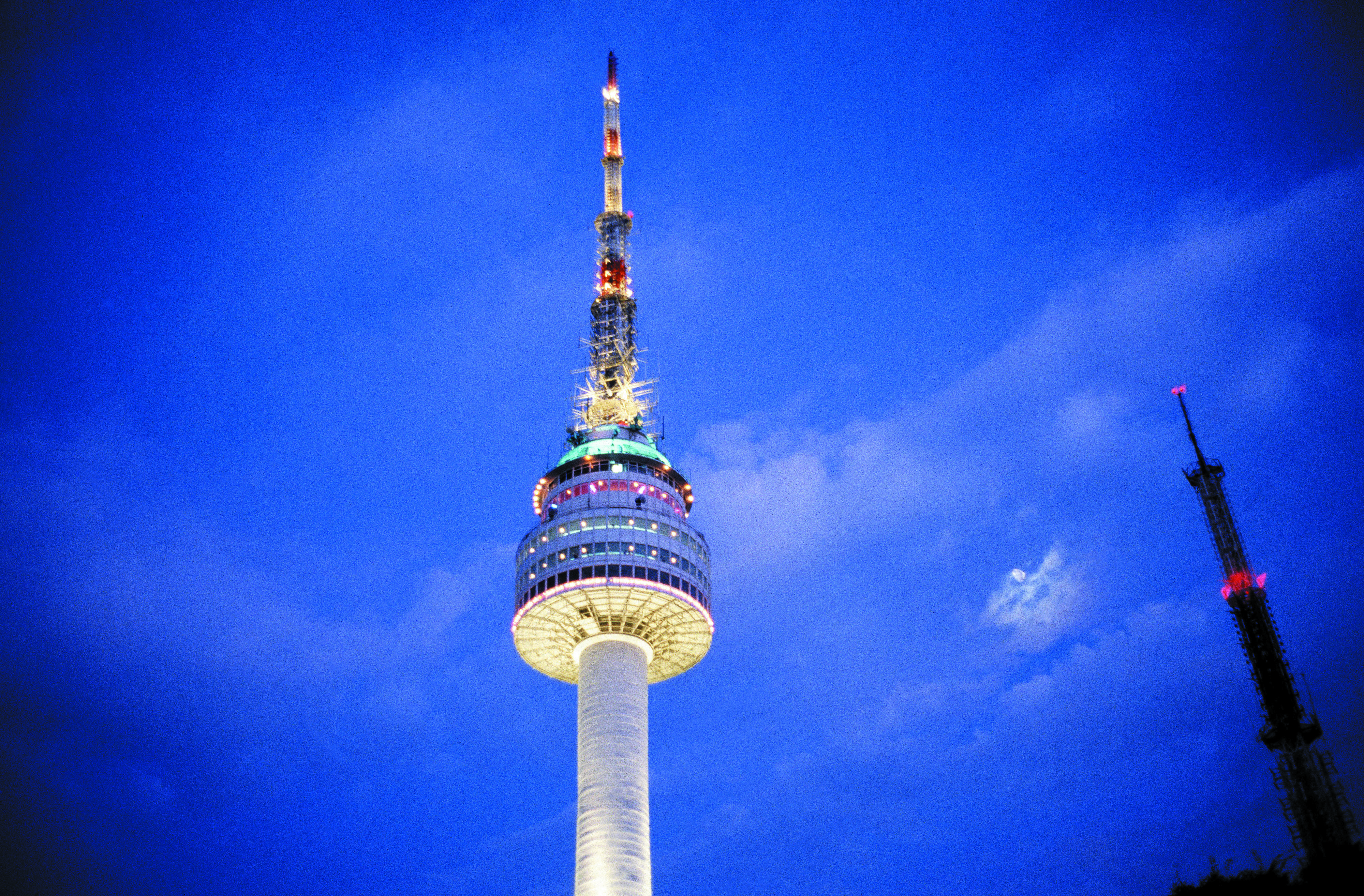 The N Seoul Tower is a tower in Seoul, South Korea and it’s considered a tourist landmark. It is highly popular with both citizens and tourists because of its panoramic views and the tower’s colorful look at nighttime.