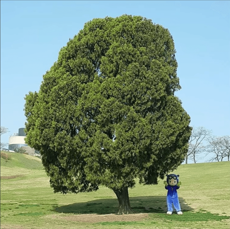 He had an adorable photo of a character costume standing next to a big blossoming tree.