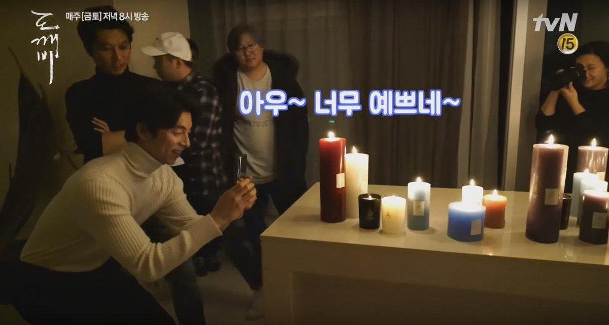 While filming for Episode 12, Gong Yoo started to act playful with Kim Go Eun as he helped her take a picture next to the lighted candles.