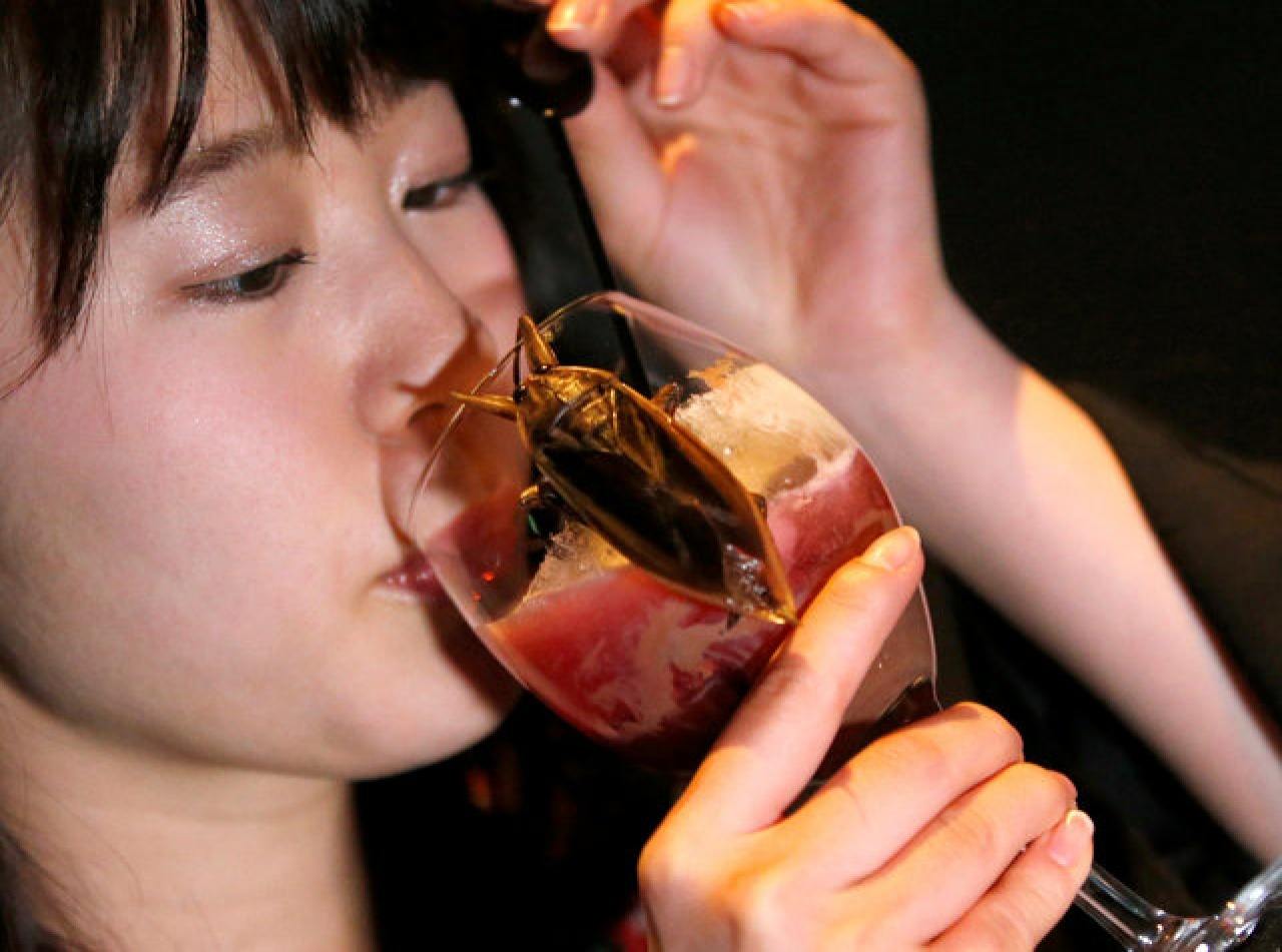The cranberry cocktail had water bug guts mixed in and had a giant Thai water bug hanging off the side. / Source: Reuters