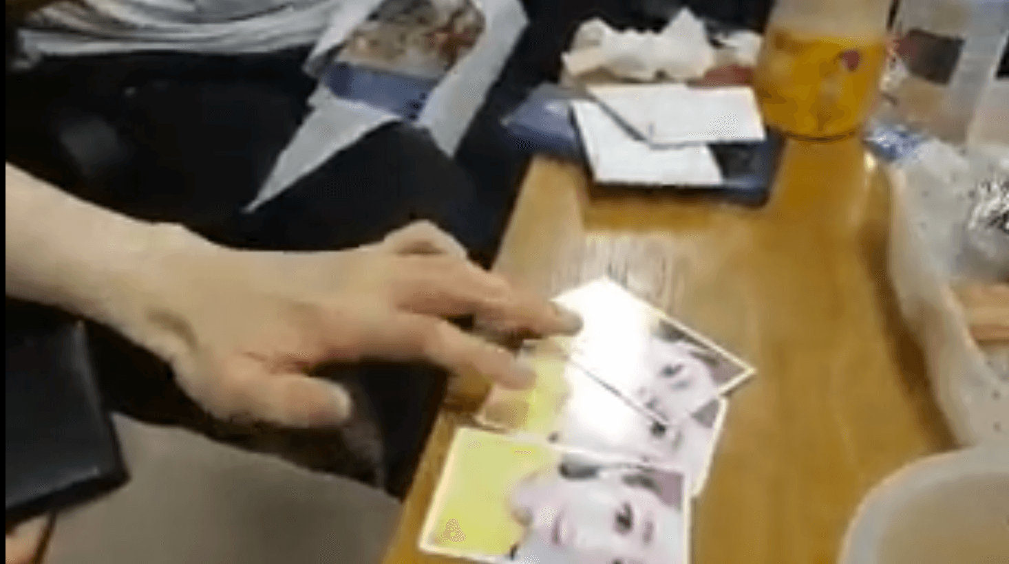 Videos posted to Twitter show Bang’s excitement when he received photo cards as a gift.
