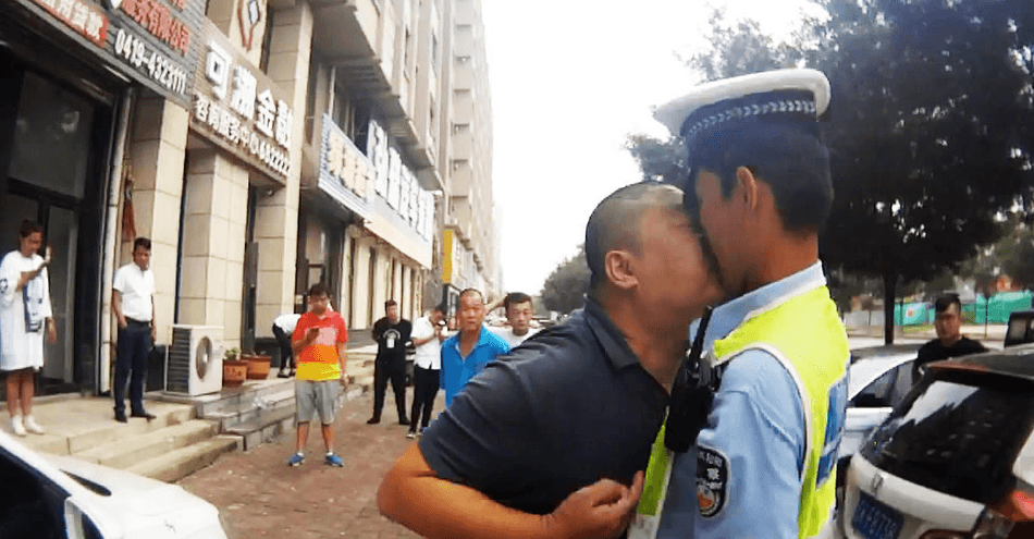 Chinese Man Picks A Fight With A Police Officer, Then Suddenly Kisses Him