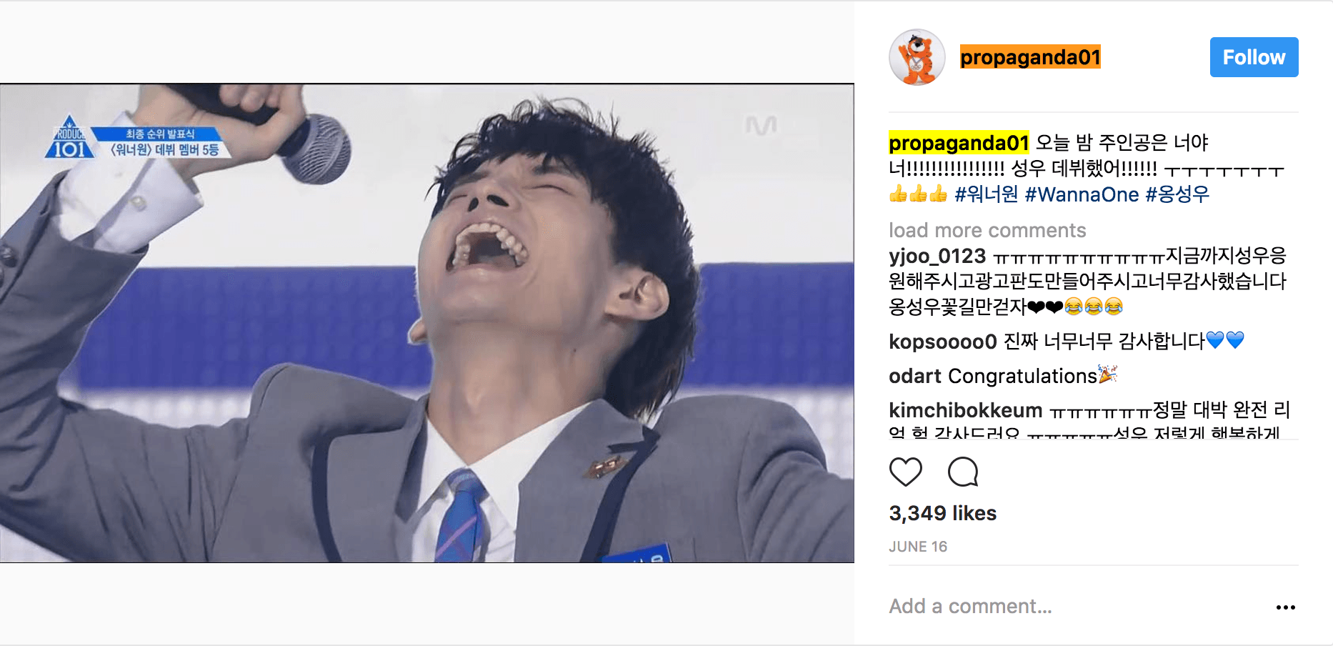 “Tonight’s star is you!!!!!!!!!!!!! Seongwoo has debuted!!!!!!!!! #WannaOne #OngSeongwoo”