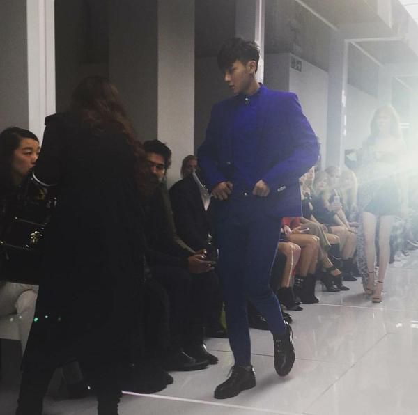 Christon writes on his Weibo, ” Huang Zitao achieved a feat at London’s fashion week: Only after the opening of the Versace show did he enter the venue, so he had no other choice but to blend into the crowd with the models. He was walking on the sides of the stage, finding his seat, and in the end sat beside Suzy Mekens. When other celebrities go to fashion weeks, they usually just watch the show, but only Tao walks and watches at the same time. Even Anna Wintour doesn’t do this, who else can beat him?” providing a short .gif and the photos of Tao’s arrival.